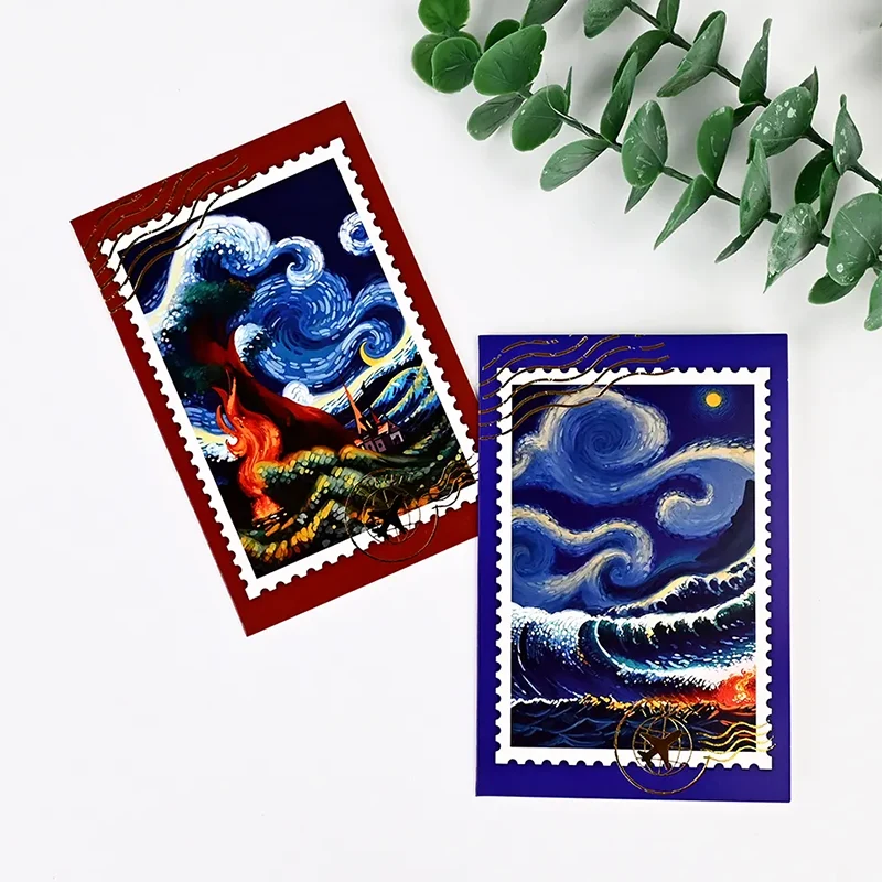 1) Premium Hot Stamping: Każda karta z życzeniami ma luksusowe metalowe wykończenie na gorąco, dodając przyciągające wzrok połysk, który poprawia elegancję karty.